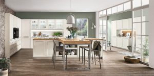 Fronten van massief hout stralen altijd een hoogwaardige en natuurlijke materiaalschoonheid uit. Daarom zijn ze ook zeer geschikt voor het creëren van een moderne, eersteklas Landhuislook. Heldere vormen, natuurlijke kleuren en talrijke charmante details, zoals wilgenkort-uittrekelementen, spijldeuren of flessenrekken, geven deze keukens een authentieke look met feel-goodfactor. Dankzij innovatieve keukentechniek leidt dit tot een geslaagde combinatie van traditioneel en modern.